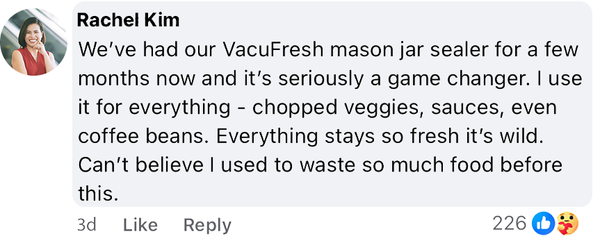 Before this, we were constantly tossing half-used veggies and leftovers. Now everything stays fresh - spinach, soups, cheese, you name it. It's become part of our routine, and it feels great not to waste food every week.