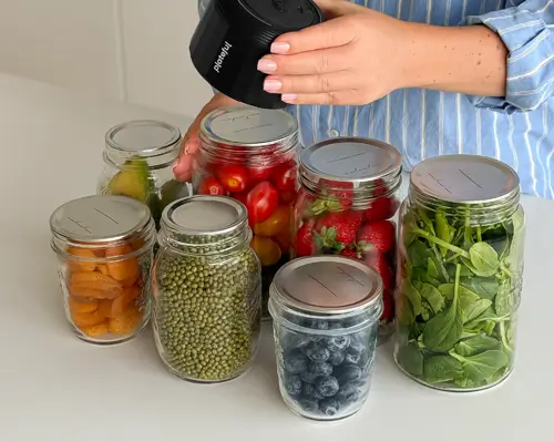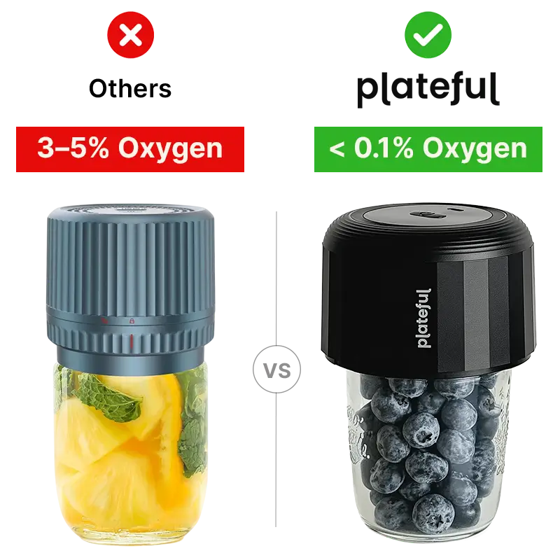 Removes 99.9% of air from your jars to stop oxidation and bacteria growth - keeping food truly preserved for weeks.