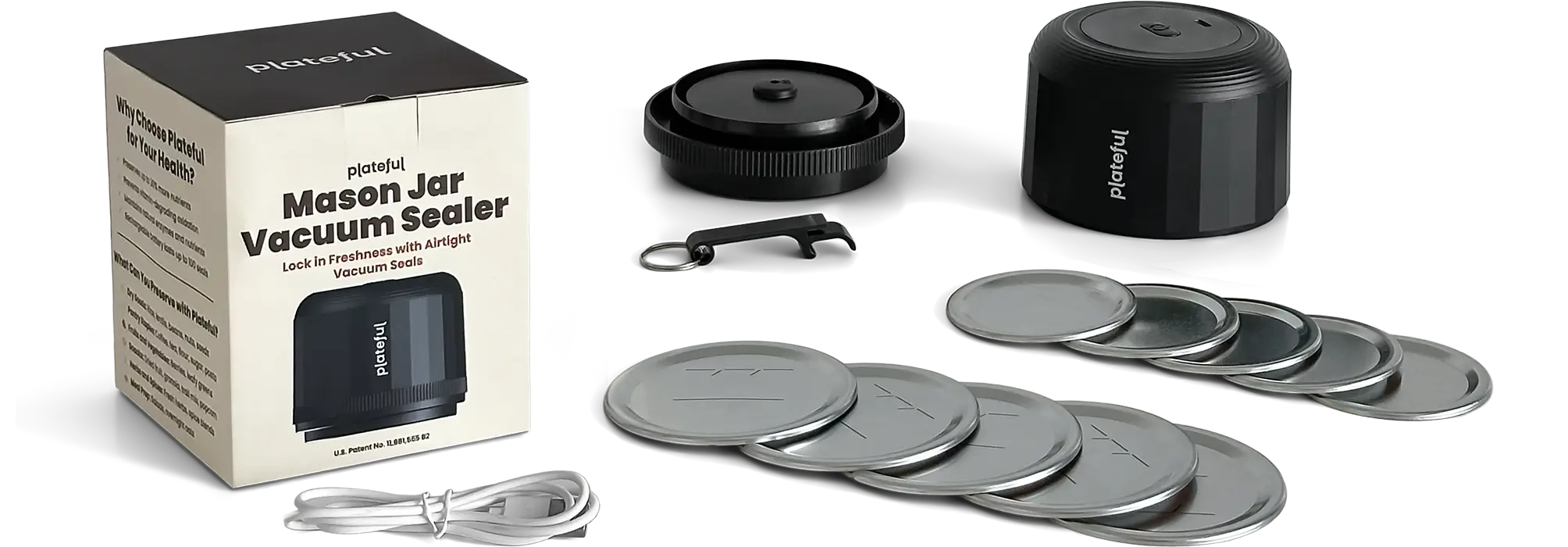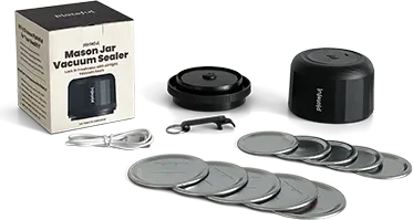With one touch, the device removes air from any mason jar, creating an airtight seal in seconds. No bulky machines, pumps, or bags - just fresher food with almost no effort.